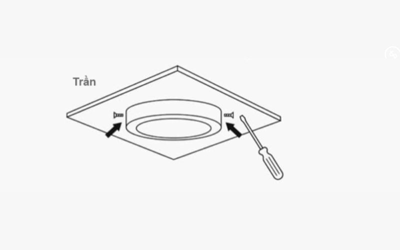 Để tháo mặt đèn ốp trần, bạn dùng tua vít để vặn tháo 2 ốc cố định đèn và gỡ mặt đèn ra.
