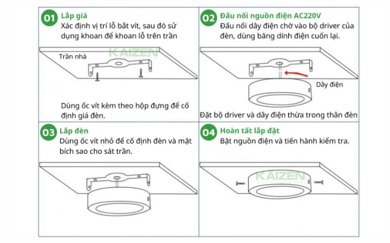 Đèn LED Kaizen còn sở hữu chip LED cao cấp với hiệu suất phát quang cao và tuổi thọ sử dụng lên đến 30.000 giờ. Do đó, sản phẩm là lựa chọn tối ưu cho hệ thống chiếu sáng và dùng thay thế khi bạn thực hiện cách tháo đèn ốp trần.