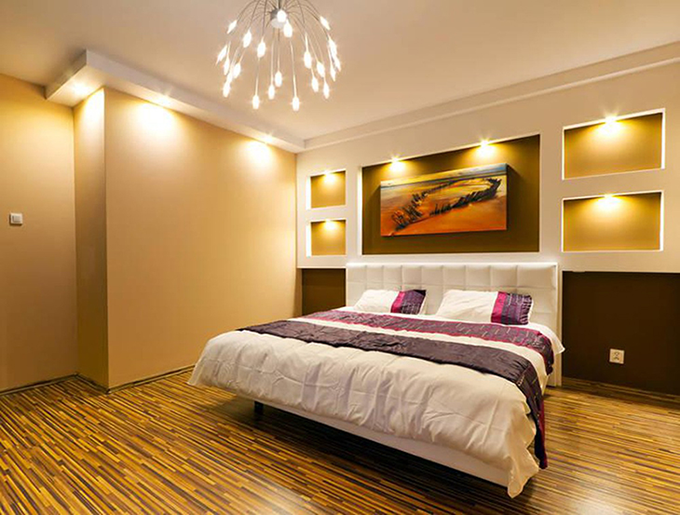 Trong không gian của phòng ngủ chúng ta nên dùng ánh sáng vàng hay ánh sáng ấm với nhiệt độ màu thấp từ 2000K đến 3000K. Với màu ánh sáng ấm sẽ giúp phòng có cảm giác ấm áp hơn. Lý do nên sử dụng màu ấm là bởi màu lạnh thường tạo ra cảm giác lạnh nhạt, thiếu ấm cúng. Tuy nhiên đối với những căn nhà tại khí hậu nóng quanh năm thì nên lựa chọn màu lạnh để tạo sự mát mẻ.